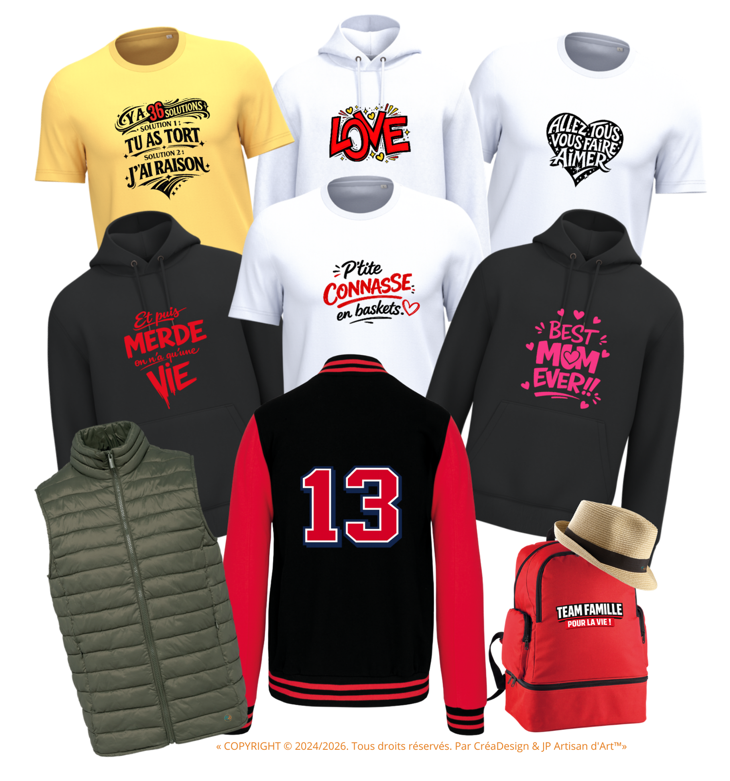 Chez CrĂ©aDesign, une collection ne suit pas seulement les saisons. Elle suit aussi vos envies, vos idĂ©es soudaines, vos Ă©lans crĂ©atifs et parfois mĂȘme vos petites folies.Nous imaginons et rĂ©alisons des textiles et objets personnalisĂ©s pour vos Ă©vĂ©nements, vos jours de fĂȘte, vos cadeaux originaux ou simplement pour vous permettre de vous dĂ©marquer avec Ă©lĂ©gance. T-shirts, sweats, accessoires ou objets du quotidien deviennent de vĂ©ritables supports dâexpression Ă votre image.