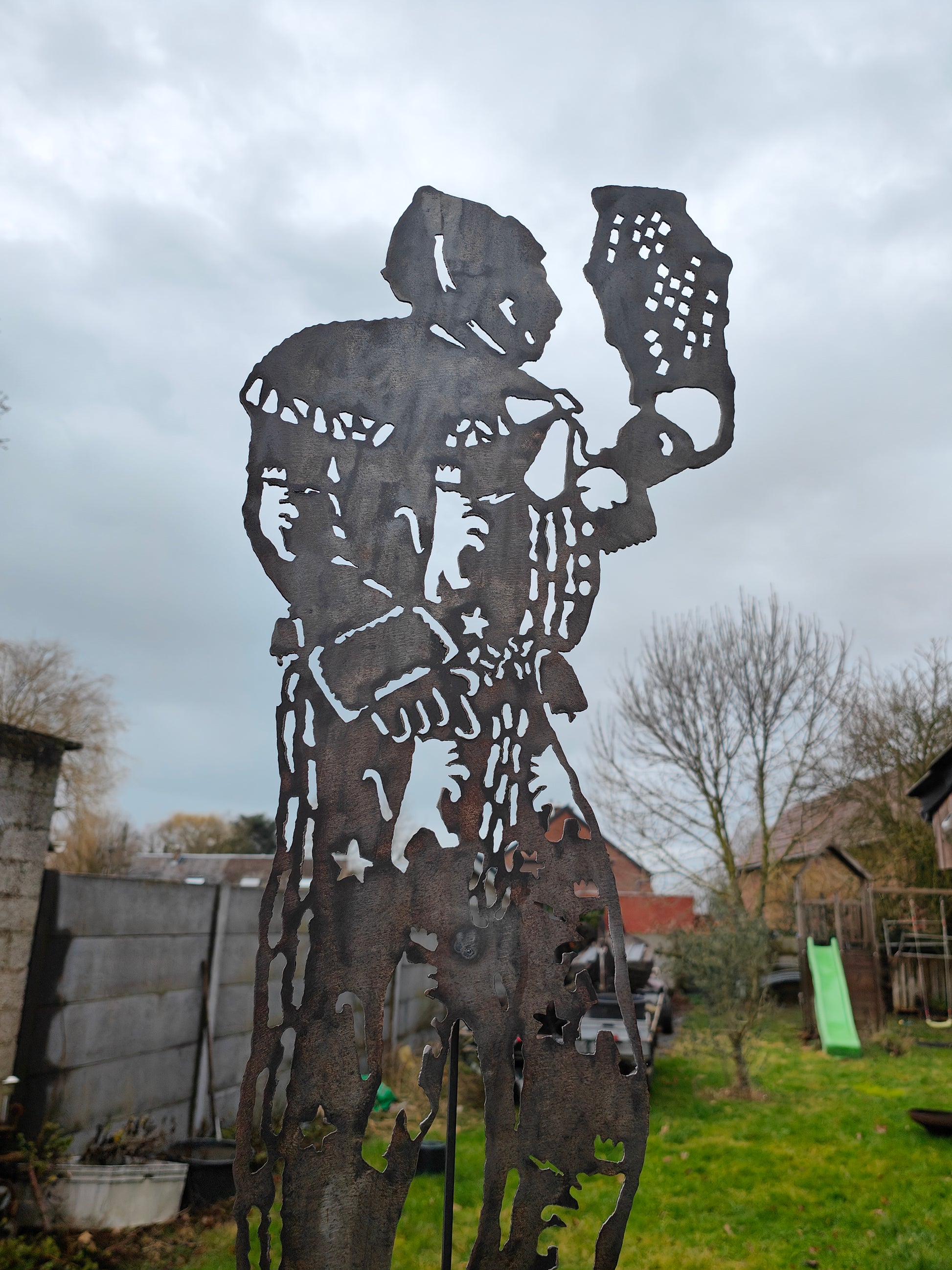 Cette pièce représente un Gille, figure emblématique du folklore traditionnel. Elle rend hommage à ce personnage symbolique à travers un travail du métal à la fois précis, expressif et authentique.